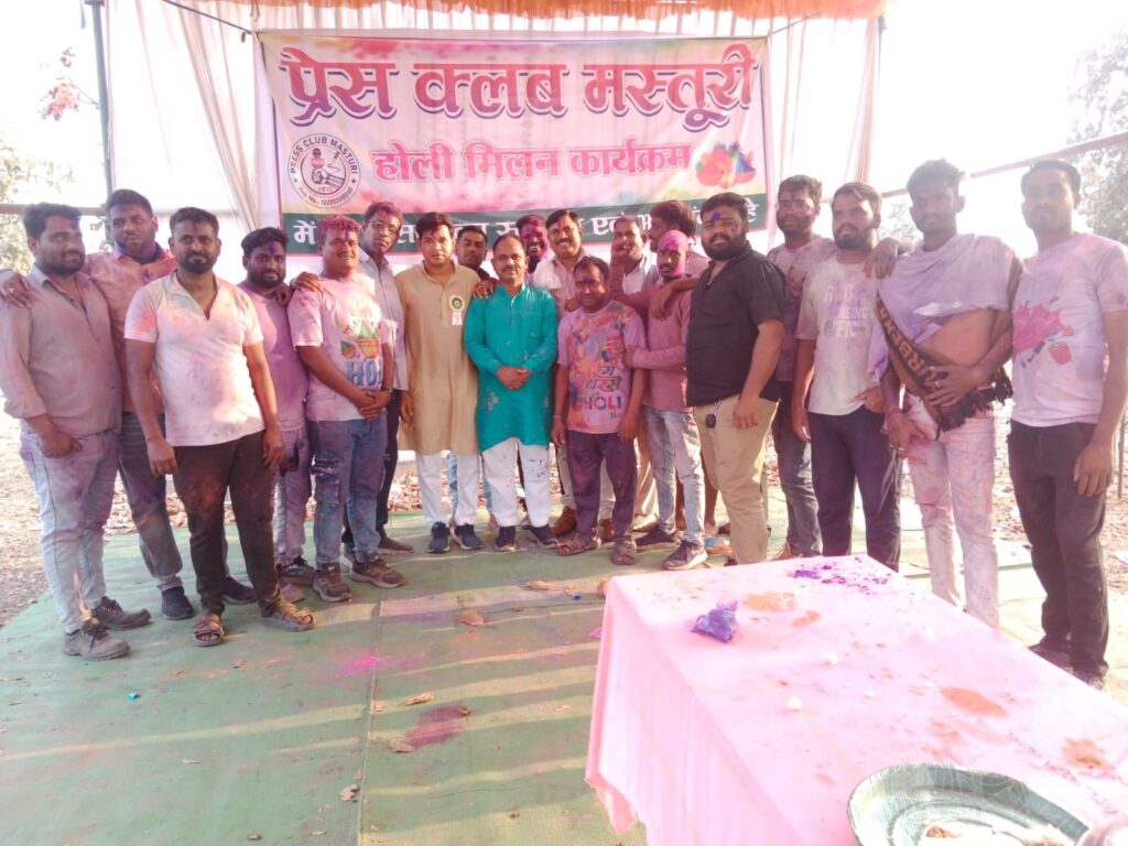 । रंग पंचमी के पावन अवसर पर मस्तूरी प्रेस क्लब द्वारा होली मिलन समारोह का भव्य और उल्लासपूर्ण आयोजन किया गया। कार्यक्रम में रंग-गुलाल, हंसी-खुशी और फिल्मी गीतों की मधुर धुनों के बीच पत्रकार साथियों और अतिथियों ने जमकर होली का आनंद लिया। पूरे आयोजन में उत्साह और भाईचारे का माहौल देखने को मिला, जहां सभी ने एक-दूसरे को रंग-गुलाल लगाकर होली की बधाई दी।